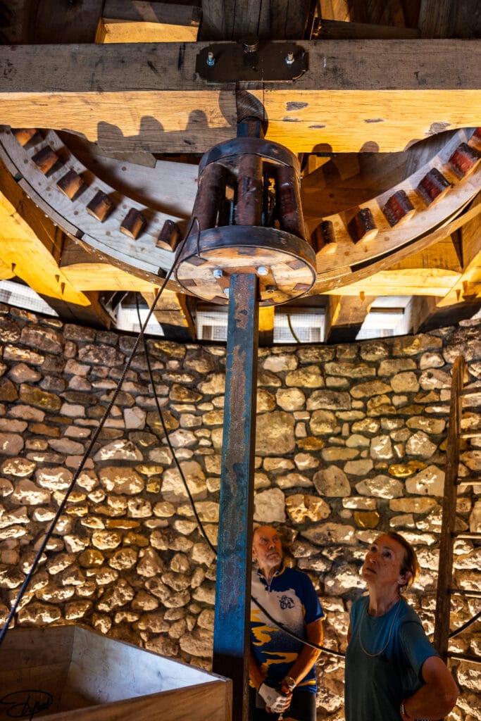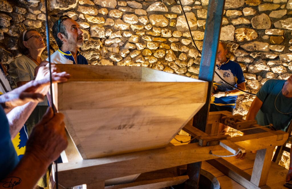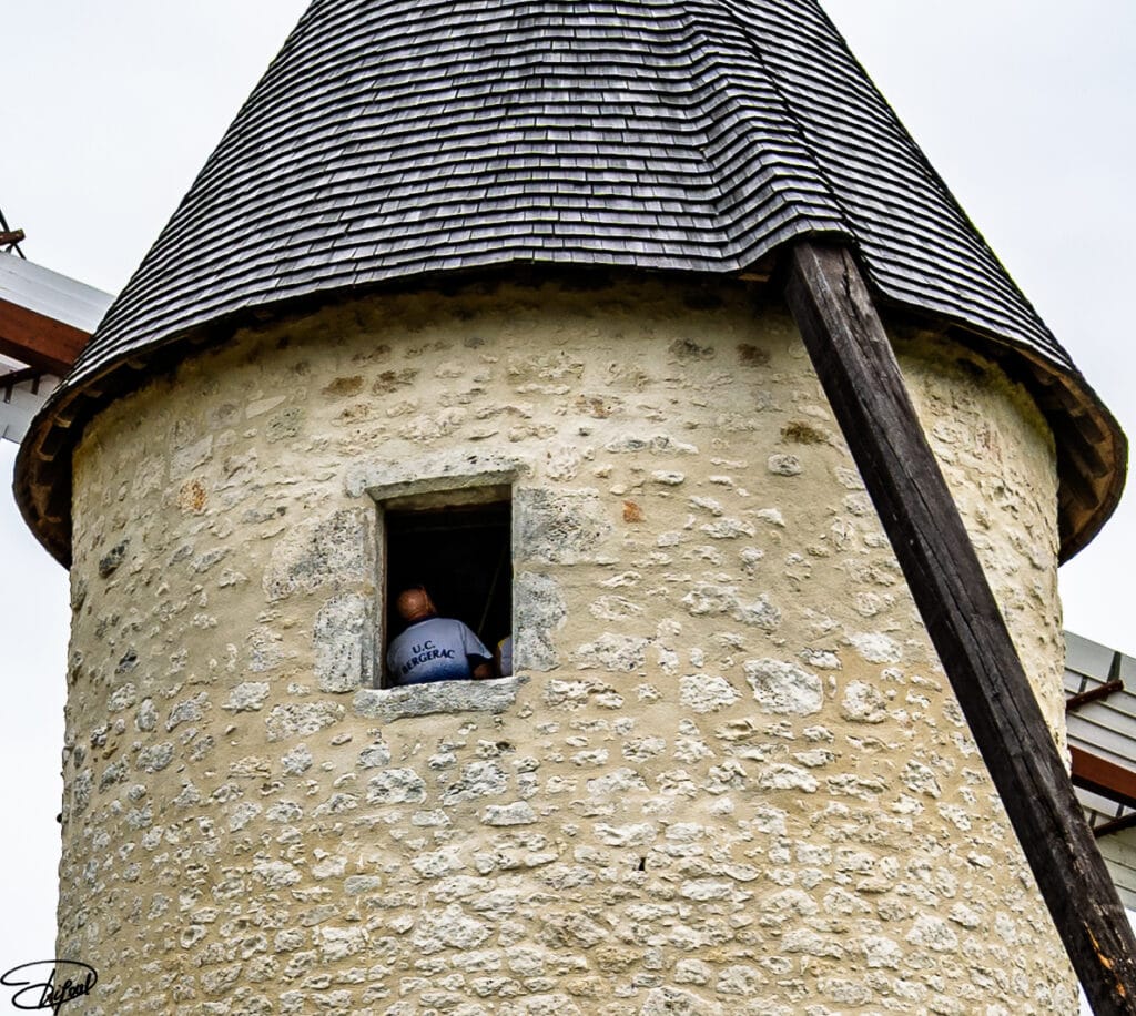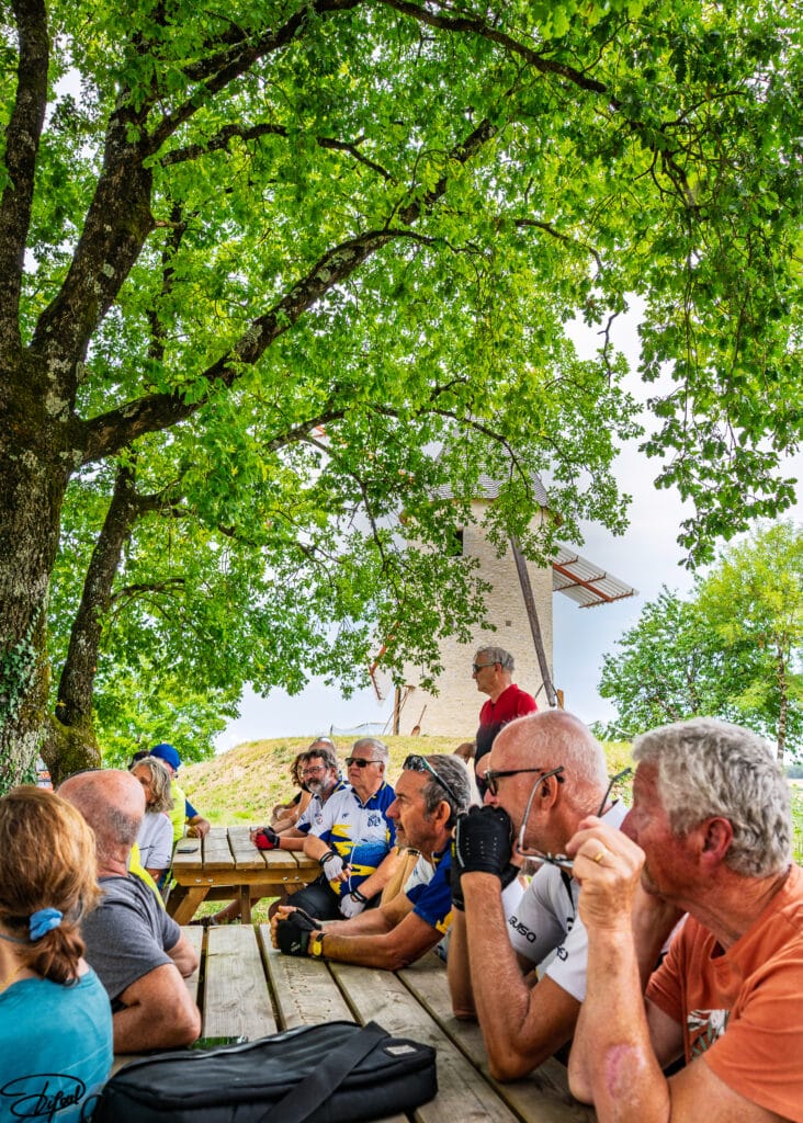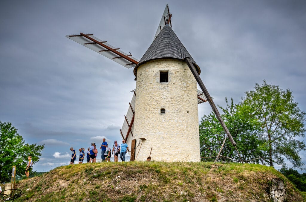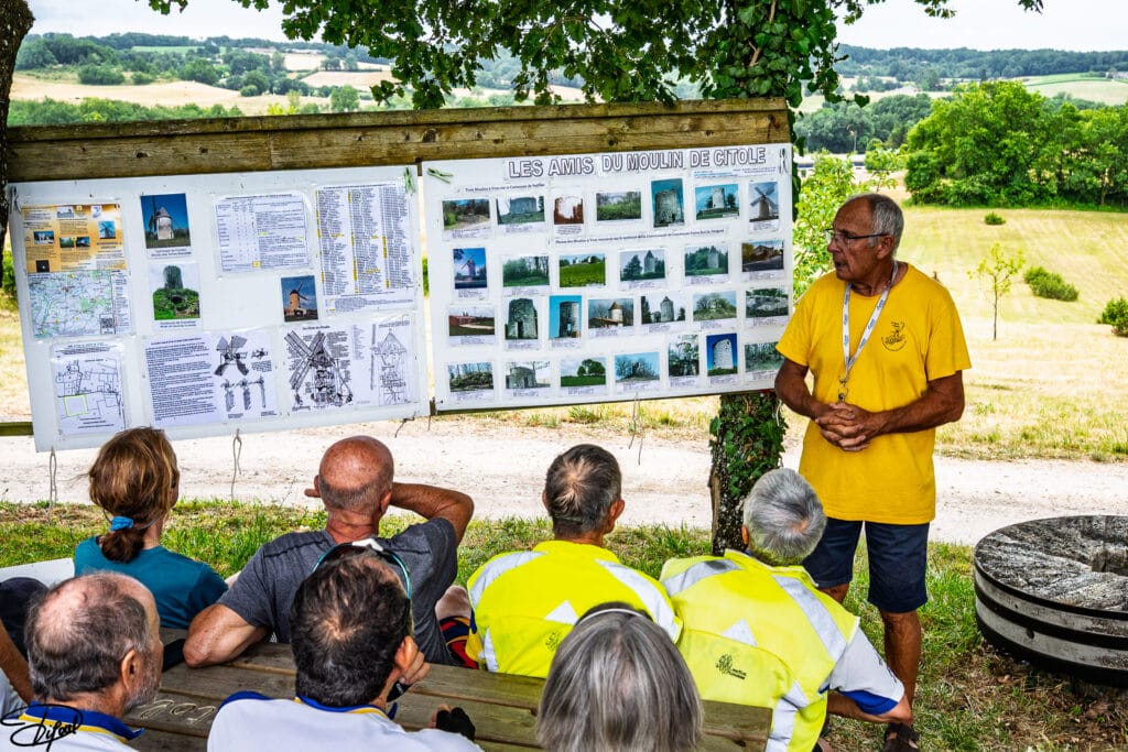 La première partie du circuit vélo de cette année d’environ 35 km nous a conduits au moulin de Citole sur la commune de Sadillac. Il s’agit d’un moulin à vent rebâti depuis quelques années grâce à une association locale : « Les amis du moulin de Citole ». En regardant les anciennes photos ,on peut dire qu’il a été retrouvé quasiment à l’état de ruine, à l’abandon au 20ème siècle après 110 ans de bons et loyaux services. Nous avons été accueillis par les bénévoles de l’association lesquels nous ont présenté cette remarquable restauration et apporté un éclairage particulièrement intéressant sur les différents types de moulins en général et sur le fonctionnement de celui-ci. Nous avons pu admirer le travail remarquable de cette reconstruction quasiment à l’identique et imaginer à quel point au 19ème siècle cette activité était importante, voire cruciale pour les populations.