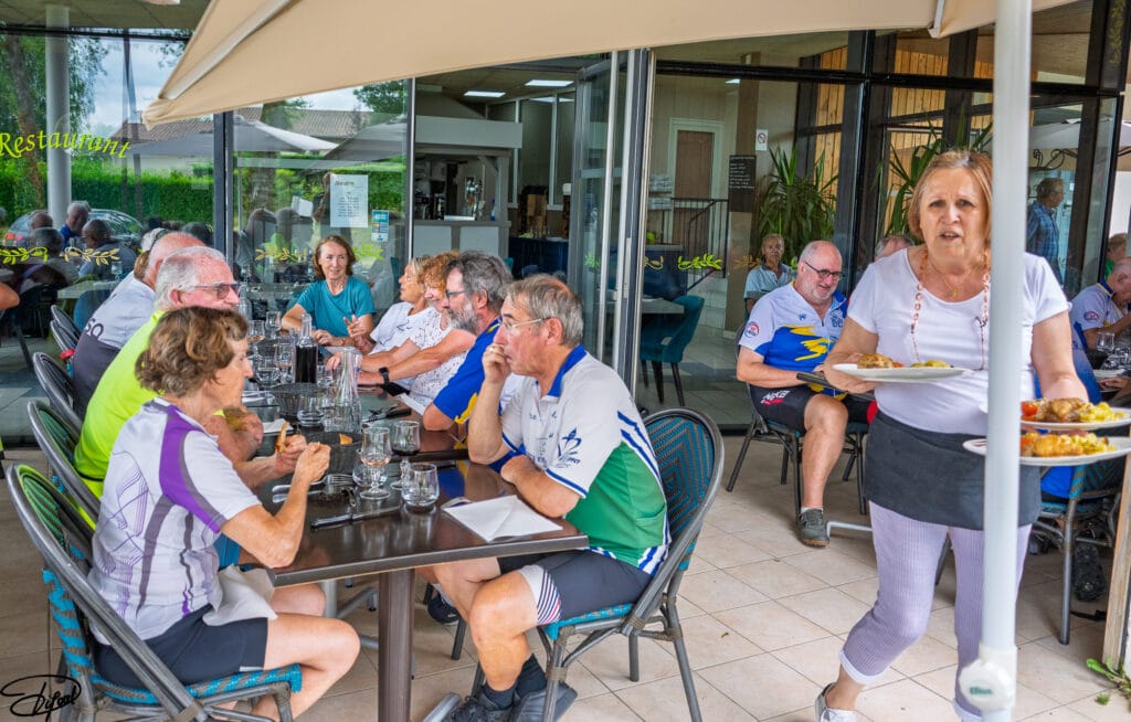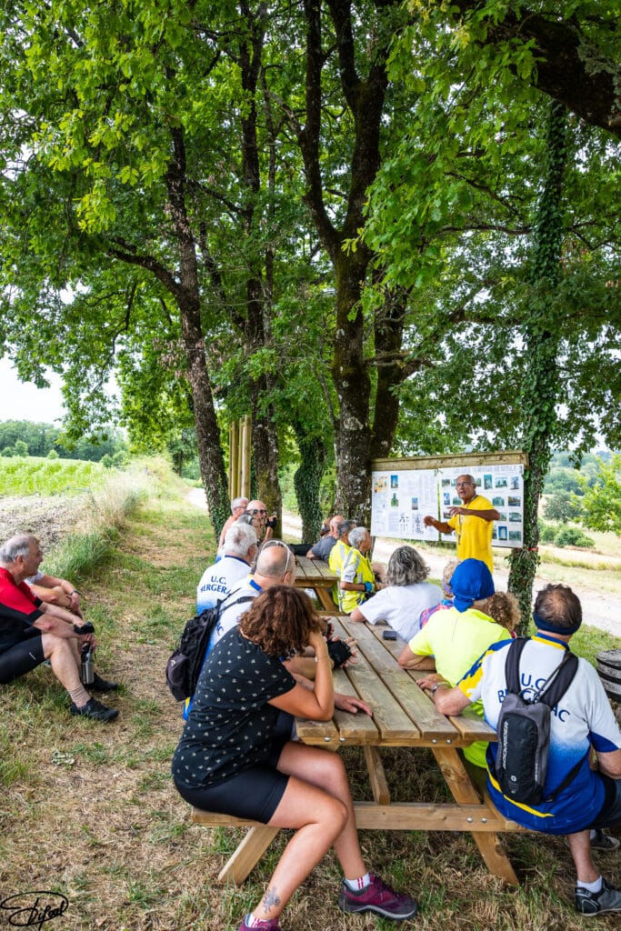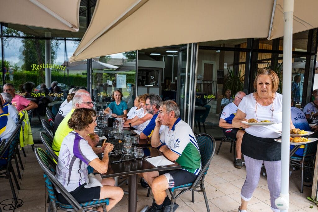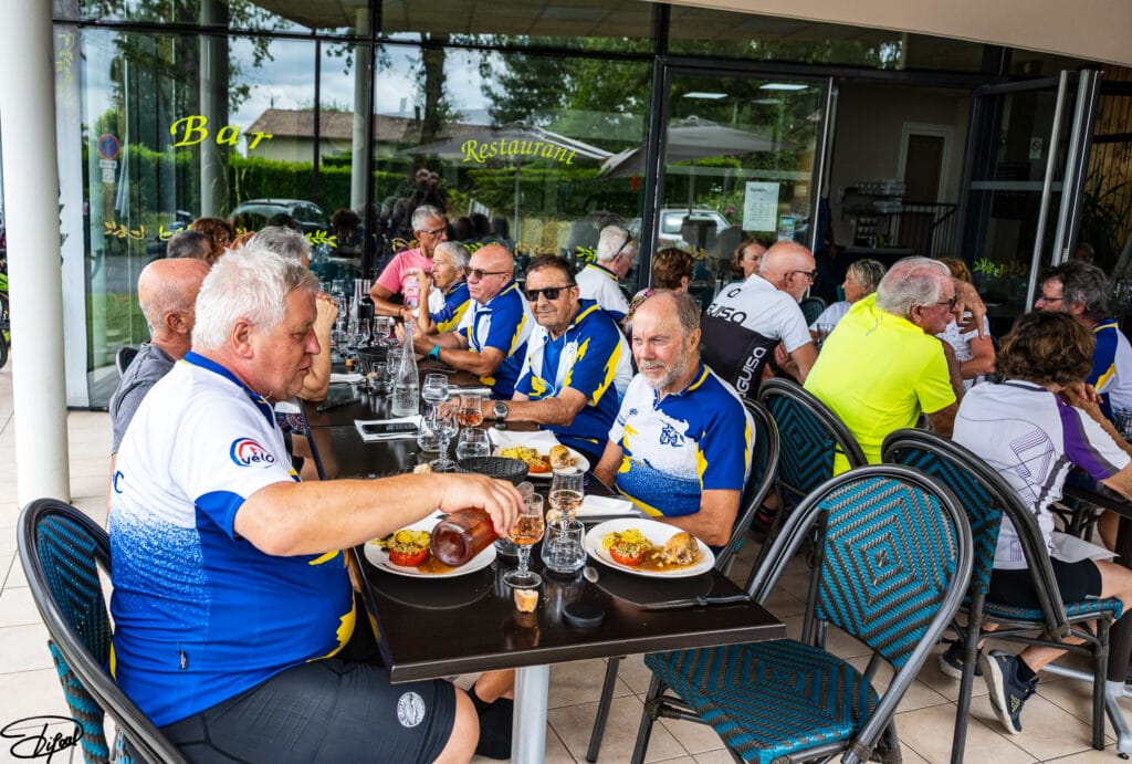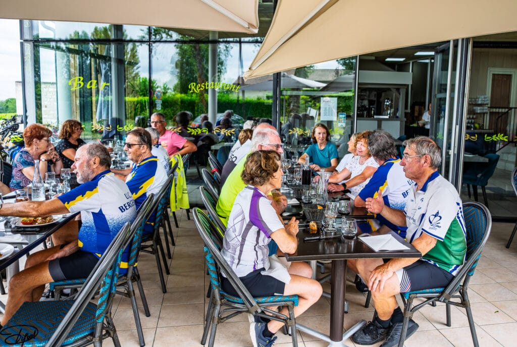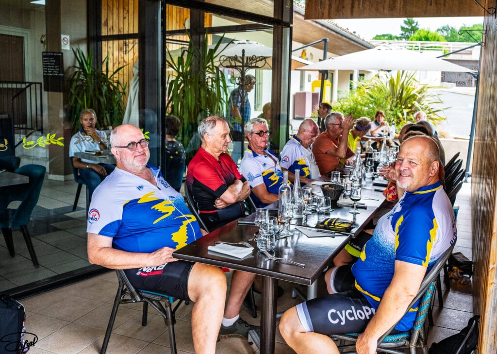 Reprenant les vélos nous sommes partis pour la courte étape suivante qui nous a conduits au restaurant le Sémillon à Monbazillac. Bière, apéro et repas, c’est l’autre aspect convivial de ce cyclotourisme que nous aimons pratiquer au sein de l’UCB. Le retour n’était pas trop difficile, la belle descente bien connue vers Bergerac ne nous ayant pas contraint à beaucoup d’efforts. Merci à nos chers organisateurs, Pascal et Valérie, qui nous ont permis de nous retrouver une fois de plus pour cette journée tradition.