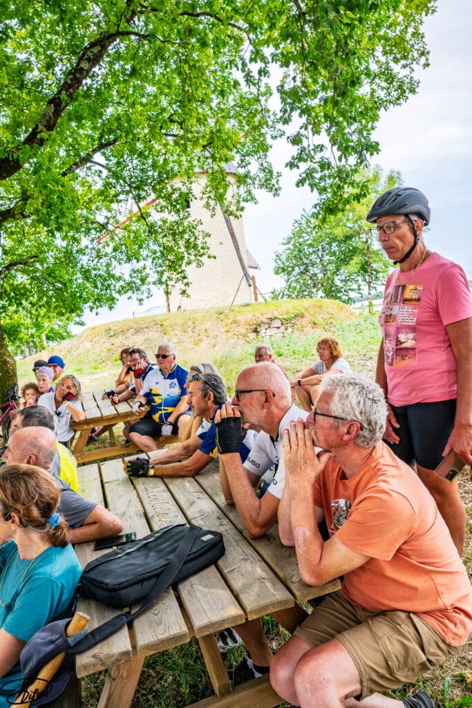 Cette année 35 membres de l’UCB se sont inscrits parmi lesquels quelques conjointes qui nous ont retrouvées soit sur le lieu de visite, soit au restaurant. Qui dit effectif important dit mesures de sécurité adaptées : 3 groupes ont été formés au départ, devant rouler à bonne distance les uns des autres. Mais par un curieux hasard de GPS en désaccord … ou de raccourcis bien opportuns l’ordre de départ ne fut pas forcément le même à l’arrivée au moulin !