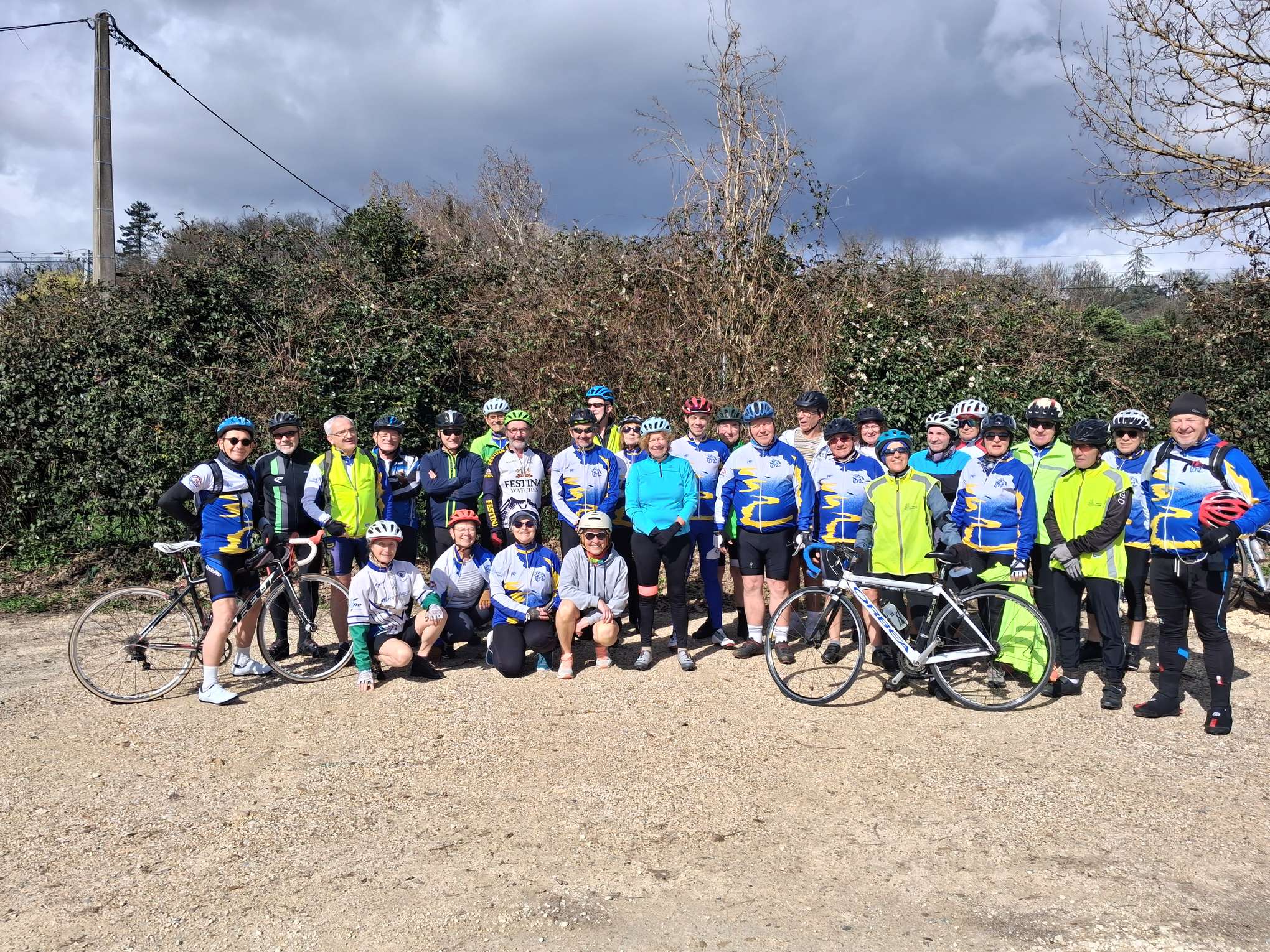 Après la traditionnelle photo de groupe, la trentaine de cyclos très enthousiaste s’est élancée par groupe d’une dizaine sur les petites routes très peu vallonées pour un circuit d’environ 55 kms.